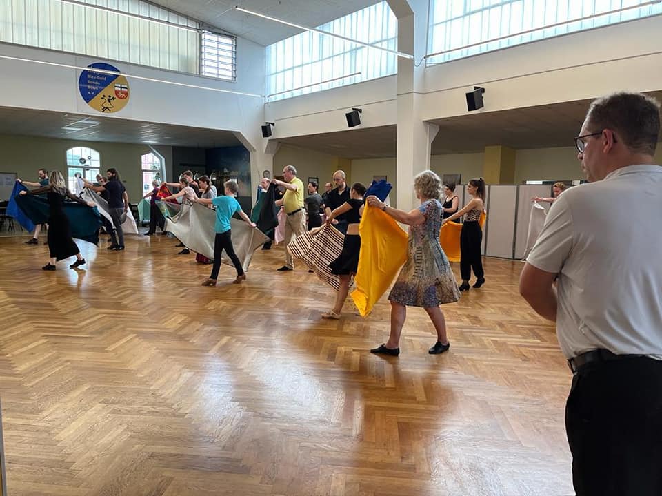 Beginnend mit Gleichgewichtsübungen und einer Schulung von Fokus, Sensorik und Beweglichkeit wurde ein harmonisches Miteinander im Paar in der Rumba geschaffen, das miteinander Bewegen ohne sich zu berühren war ein Schwerpunkt des Workshops. Im Paso Doble sorgten große Tücher als raumgreifendes Accessoire für eine stolze Haltung im Tanz und zum Tanzpartner. Neben der Welle im Körper stand die gute Bounce Technik aus dem Knie und Fußgelenk heraus und die Lebensfreude in der Samba im Mittelpunkt des dritten Workshoptages.
