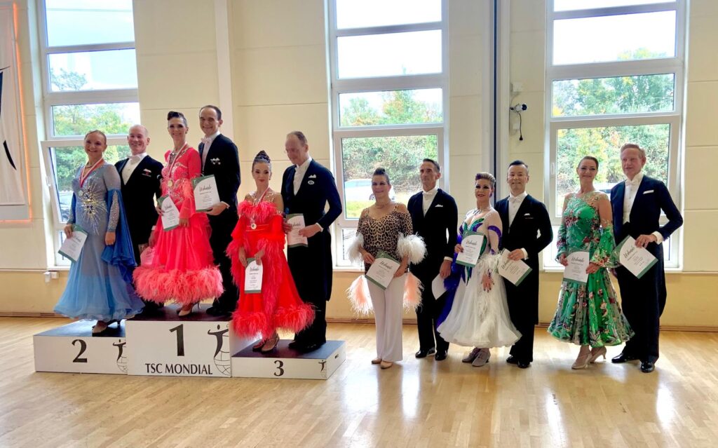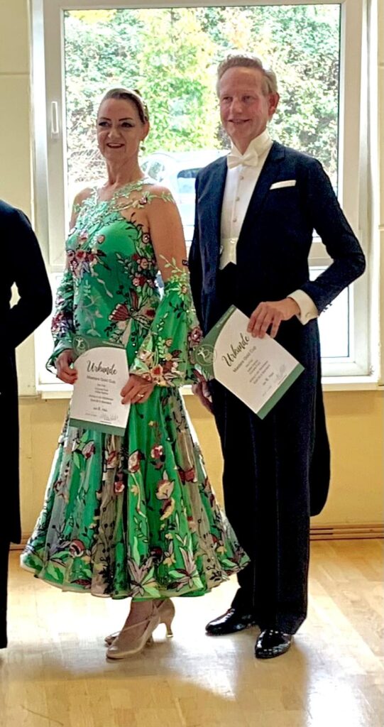 Conny berichtet: „Volker und ich haben heute unser 2. Turnier getanzt im Mondial Köln. Es war das letzte Qualiturnier des Masters Gold Cup. 15 Paare waren am Start. Wir haben es ins Finale geschafft und sind sehr glücklich über den 6. Platz. Getanzt wurde über 3. Runden. Vorrunde haben wir mit 25 Kreuzchen beendet. In der Zwischenrunde mit 13 Paaren haben 11 Kreuzchen für den Finaleinzug gereicht.“
