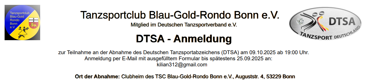 Auch in diesem Jahr besteht die Möglichkeit, das Deutsche Tanzsportabzeichen abzulegen. Hierbei tanzt man vor eine Fachjury seine Lieblingstänze vor und erhält im Anschluss direkt
